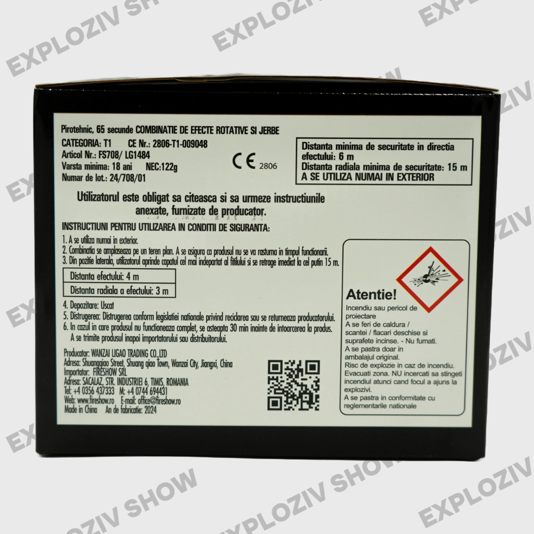 A se aprinde capătul cel mai îndepărtat al fitilului din poziție laterală și a se retrage imediat la cel puțin 1m.